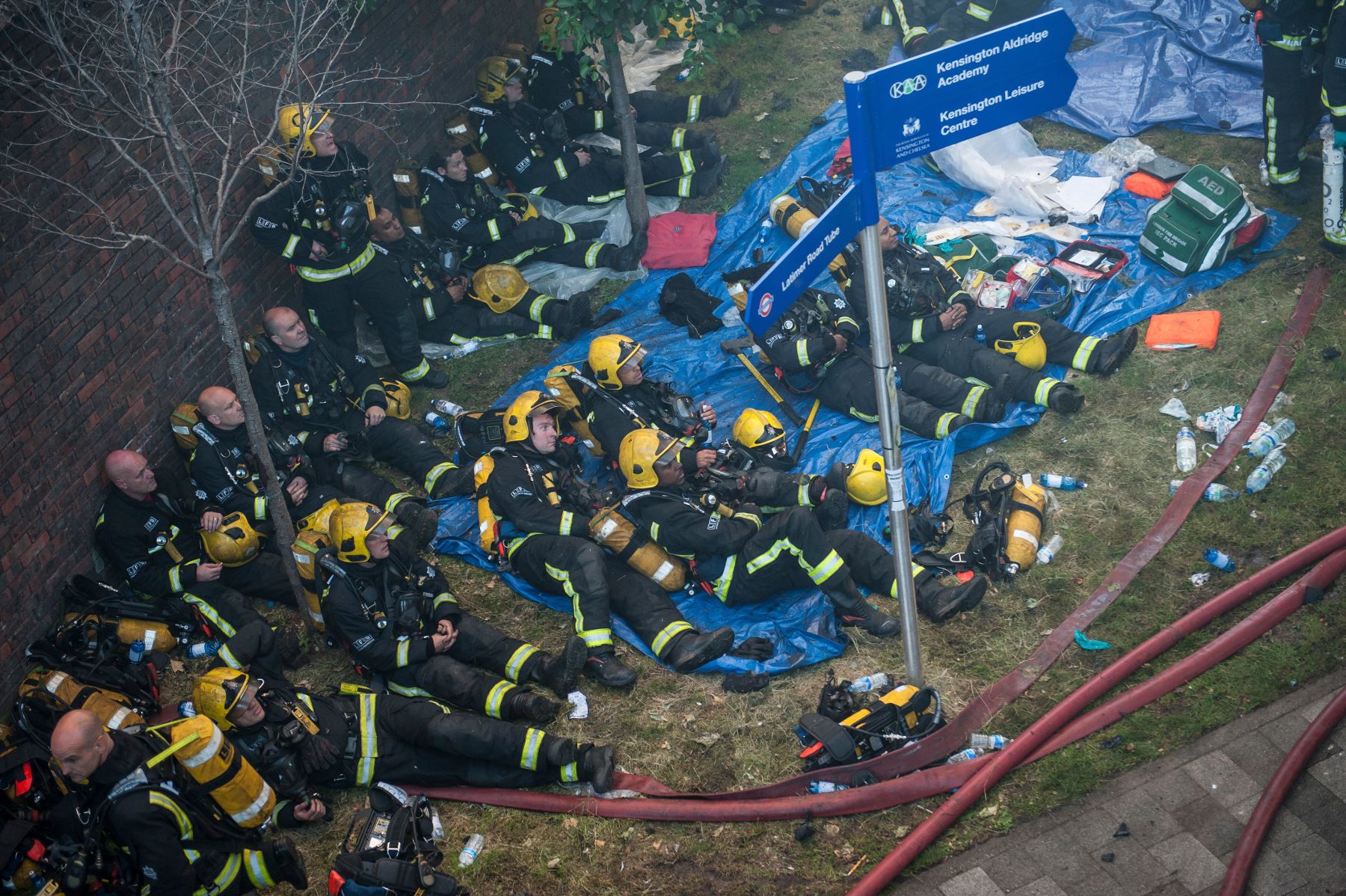 Firefighters took brief moments of respite as Grenfell continued to burn. “They went up fresh faced. Coming down, they looked drained and like they’d been shot," Pete Wolfenden said of his colleagues. "A firefighter collapsed. Some occupants were getting carried down.” Firefighters were trying to get information from the returning officers, but they couldn’t even recognise them because they were covered in so much soot. The smoke was thick “like liquid. Virtually everyone who came down couldn’t even speak.”